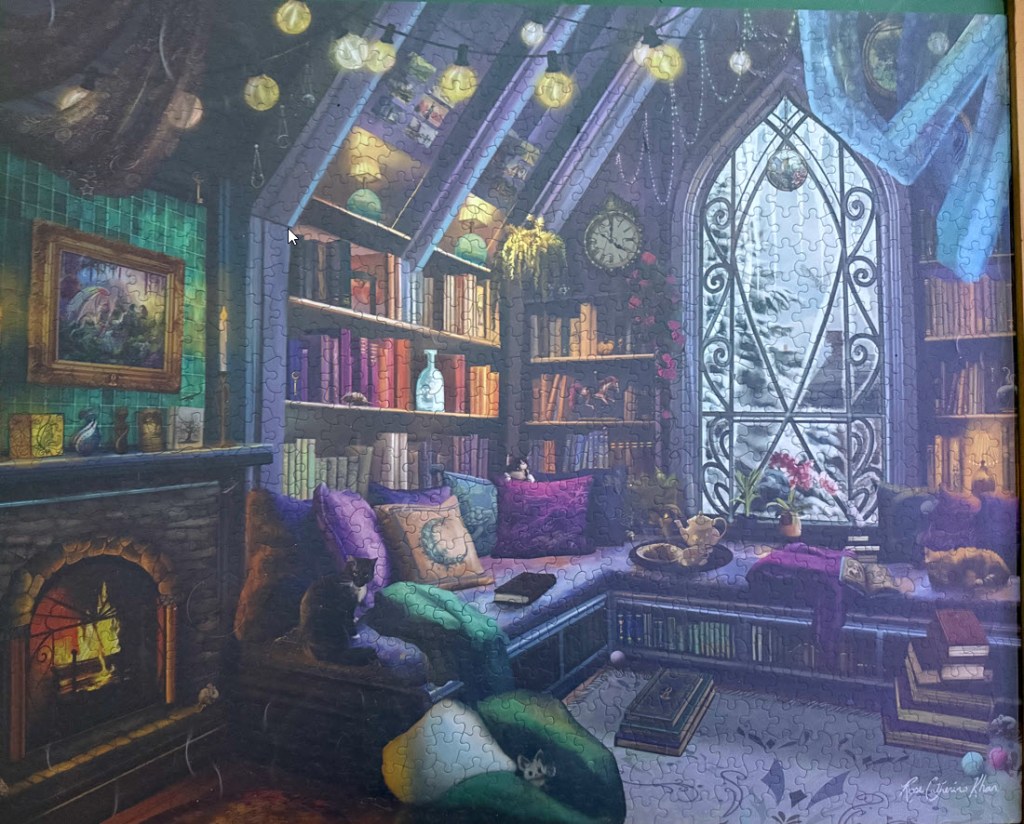 Explore Parker’s collection of paintings, framed puzzle work, and handmade crafts showcasing diverse themes and artistic styles.